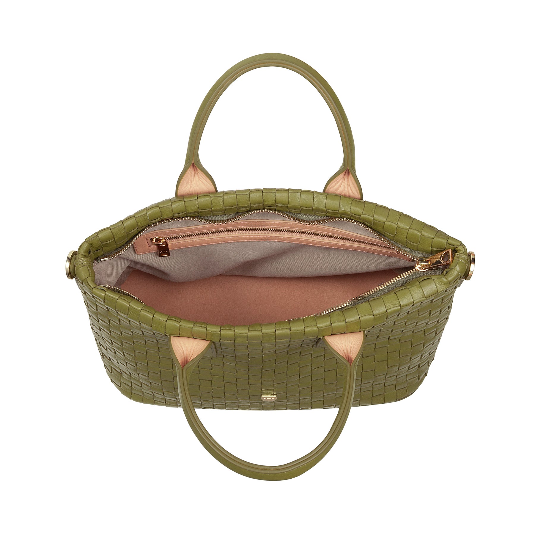 Diese Frauenbeutel für Frauen kombiniert raffiniertes Design und tägliche Funktionalität. Die miteinander umgreifende handwerkliche Verarbeitung verleiht Charakter und Einzigartigkeit und verwandelt ein klassisches Accessoire in ein Detail des zeitgenössischen Stils. Ausgestattet mit Doppelgriffen und einem verstellbaren und abnehmbaren Schultergurt im Stoff mit Logo kann es bequem von Hand oder Schulter getragen werden und sich bei jeder Gelegenheit elegant anpassen. Das geräumige Innenraum mit einer Tasche mit Reißverschluss und Abteilen garantiert Ordnung und Praktikabilität, ohne den Charme eines Designs mit den kleinsten Details zu beeinträchtigen. Ein vielseitiges und zeitloses Accessoire, perfekt für Frauen, die in einer einzigen Tasche nach Qualität, Eleganz und Funktionalität suchen.