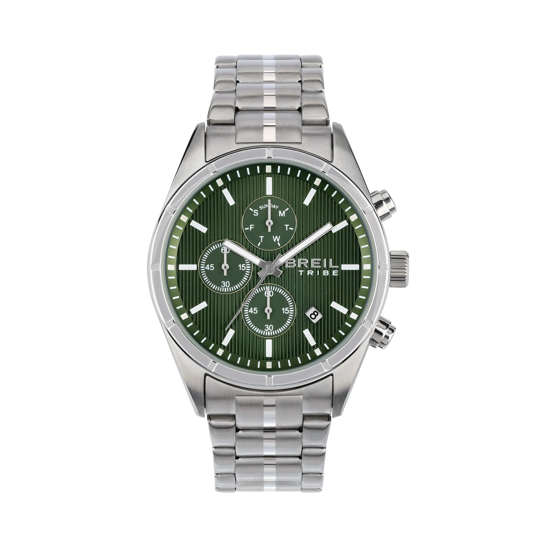 The Captain chronograph stands out for the Moss Green dial with Sunray processing, enriched with indices with Luminous treatment and Silver balls that guarantee maximum readability. The steel bezel has engraved indices that enhance its elegant design, while the date, positioned between 4 and 5, adds a touch of functionality.