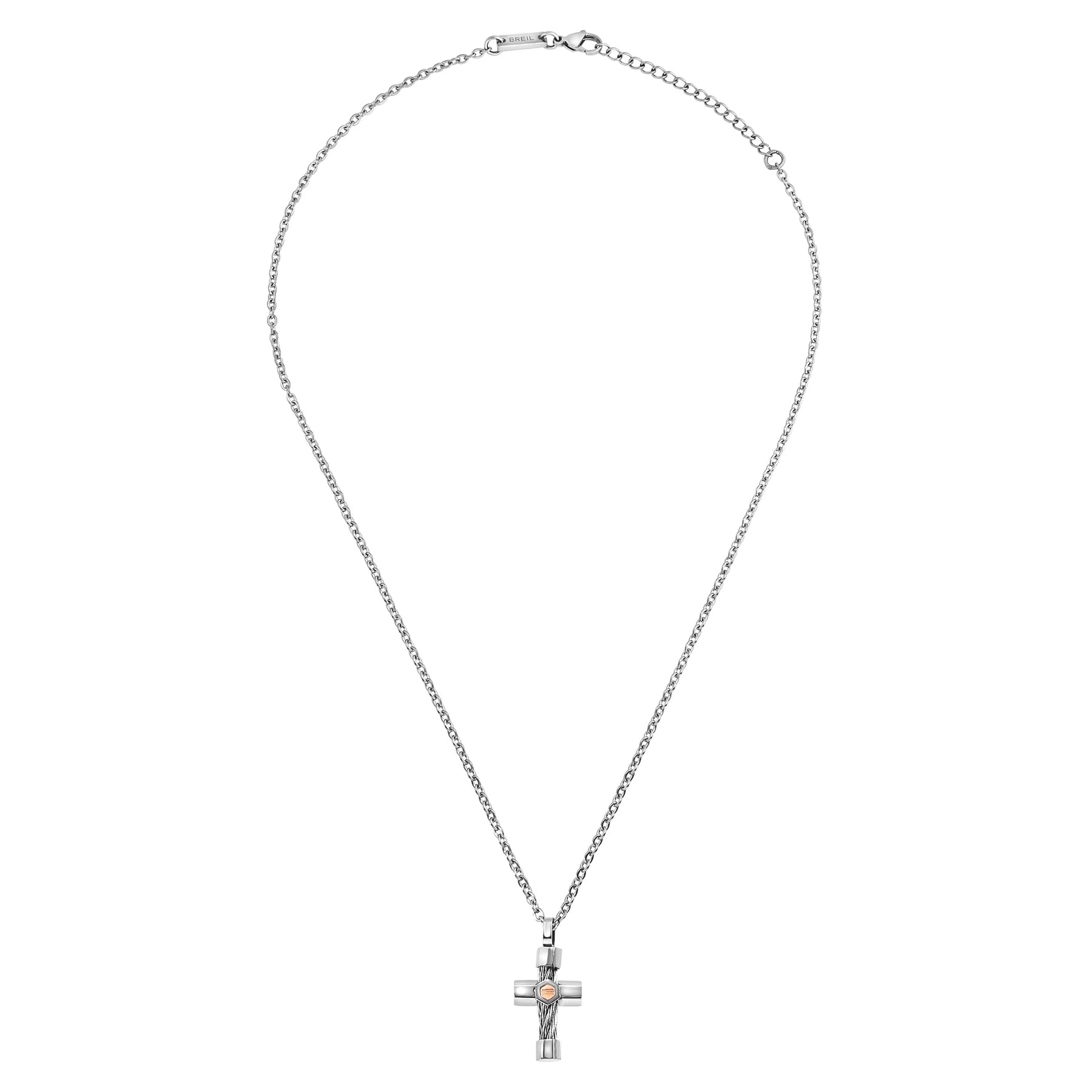 The 9K loop necklace stands out for its modern design. The steel chain is embellished with a cross pendant decorated with a 9k gold hexagonal screw. The practical cladding closure allows you to easily adjust the length of the necklace, ensuring a customized and versatile fit.