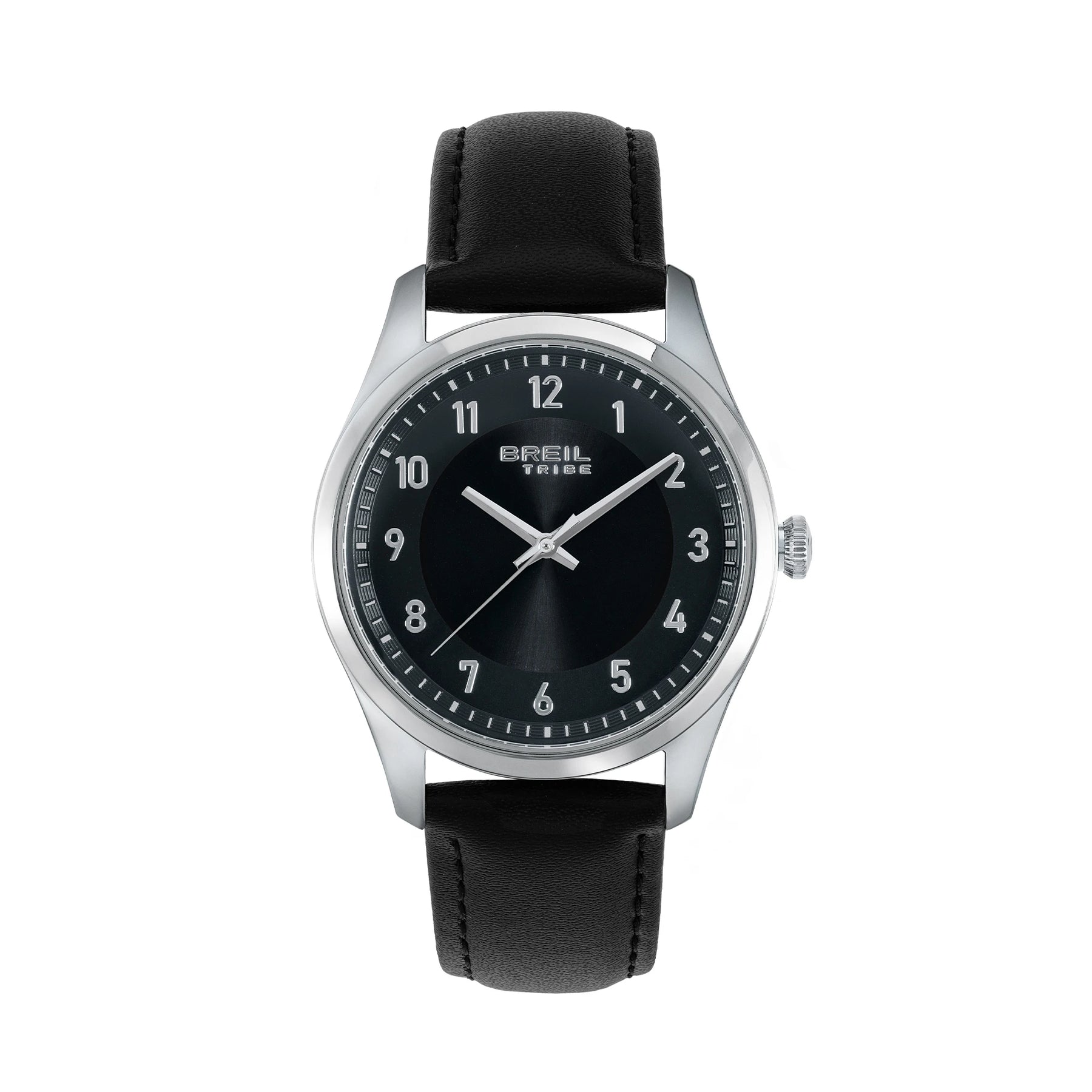 The only time clock for men refine is distinguished by the 42 mm ultra thin steel case and the black dial with Sunray finish, embellished with spheres and silver indices. Complete the design an elegant black leather strap.