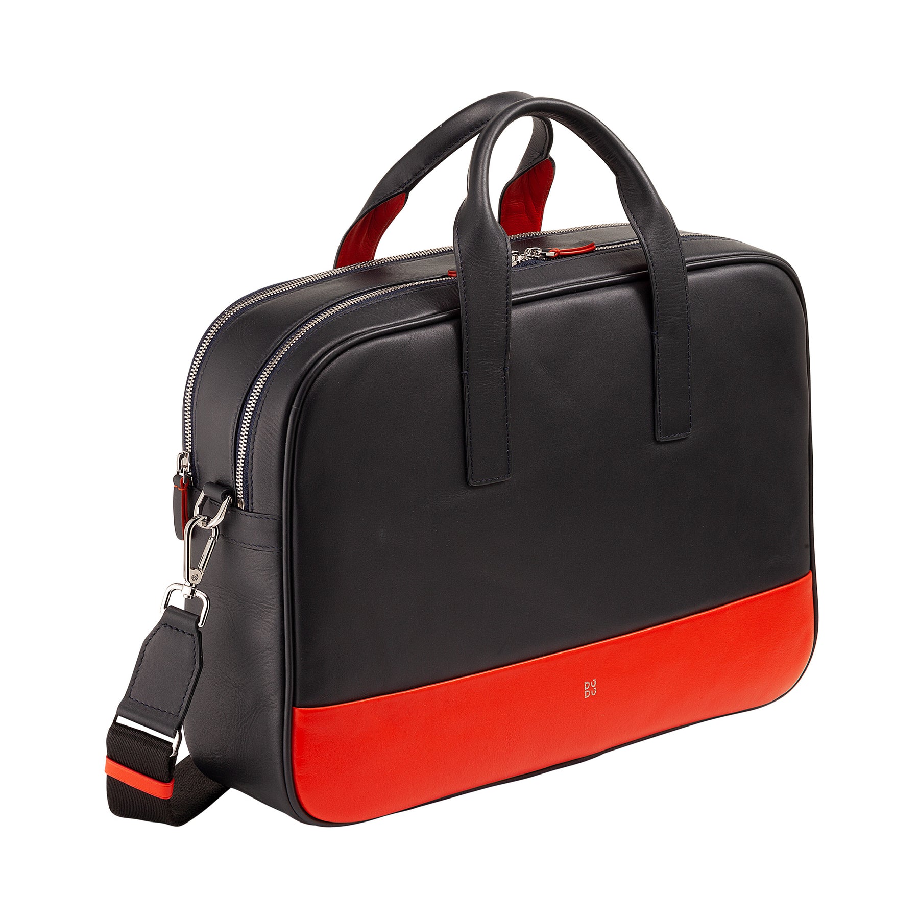 The leather business briefcase is an indispensable element in the life of every businessman and businesswoman. Equipped with a double compartment with zip closure, it can contain devices up to a 16" MacBook. Each compartment is equipped with colored pockets to better organize your work tools. Always carry your office with you on your daily trips and don't let yourself be caught unprepared in front of your potential clients: documents, notes, your favorite pen and your personal diary, there is room for everything you need. The detachable shoulder strap and the support for inserting it in the trolley are two essential elements for use it comfortably even during a business trip.