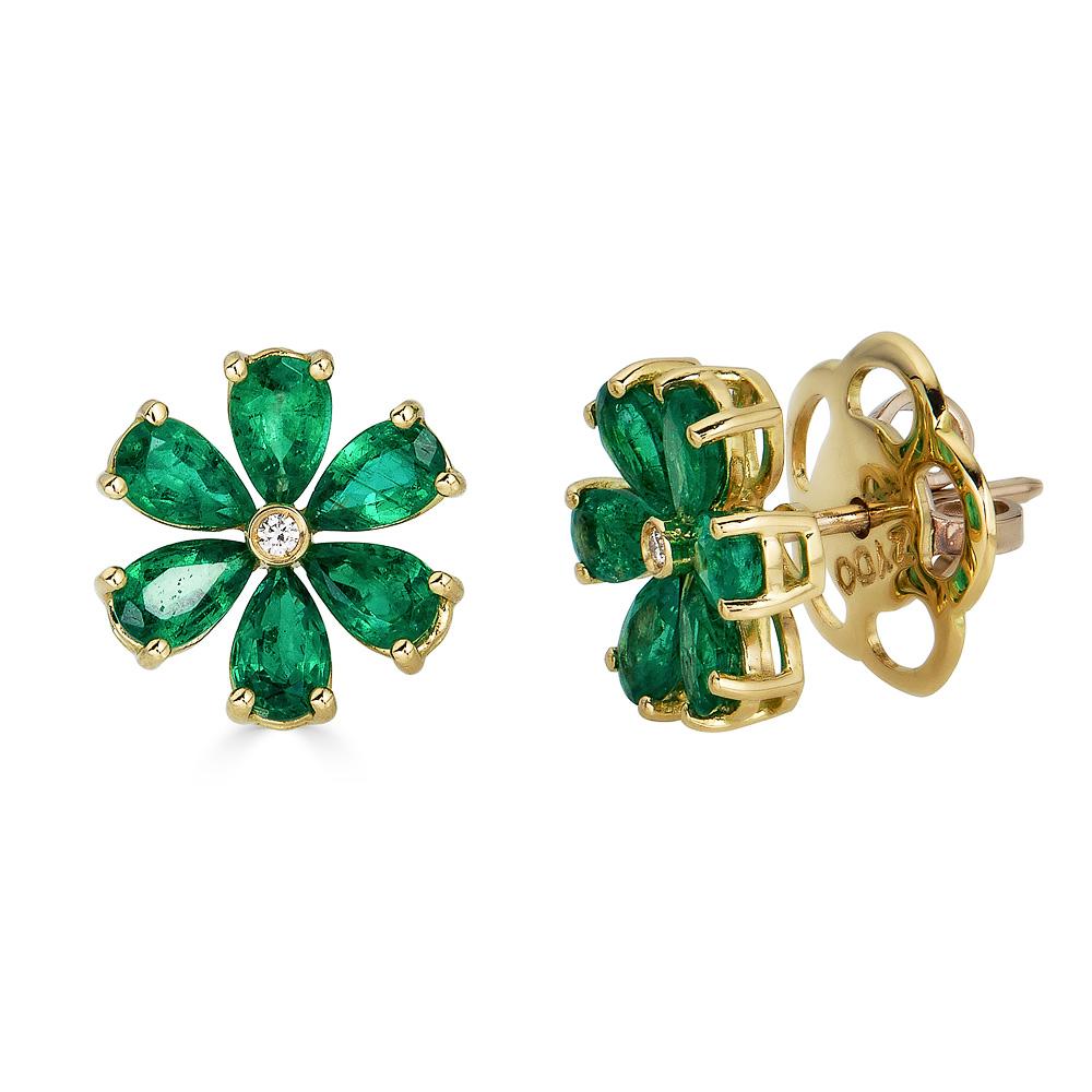 Zydo flower-shaped earrings with colored precious stones and diamonds in emerald yellow gold 62176