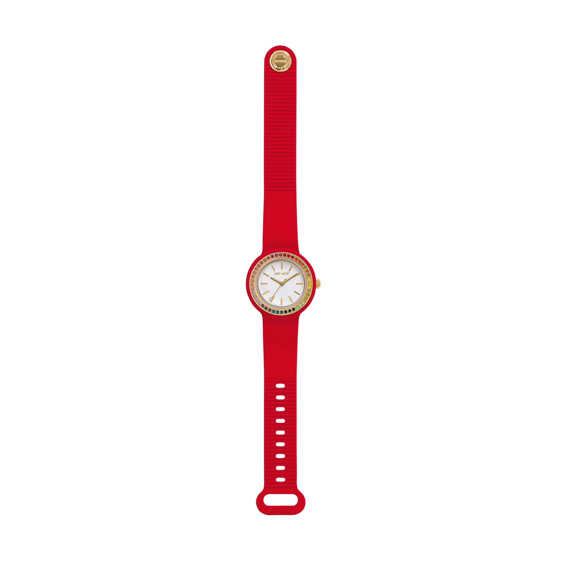 Hero.DOT Bezel Glam is the perfect combination of glam design and contemporary spirit. Its distinctive feature? The IP gold metal bezel embellished with rainbow crystals, a trendy detail, inspired by one of the strongest trends in watchmaking and fashion: the light of rainbow colours, symbol of freedom, style and personality. The glossy white dial with a shiny effect amplifies the brightness of the design and pairs perfectly with the red eco-friendly silicone strap: soft, resistant and interchangeable with the other models in the Hero.DOT collection. To complete the look, the crown and .DOT clasp in IP gold steel, which add a modern and refined touch. A watch with a strong character, designed for those who want to shine with personality every day.