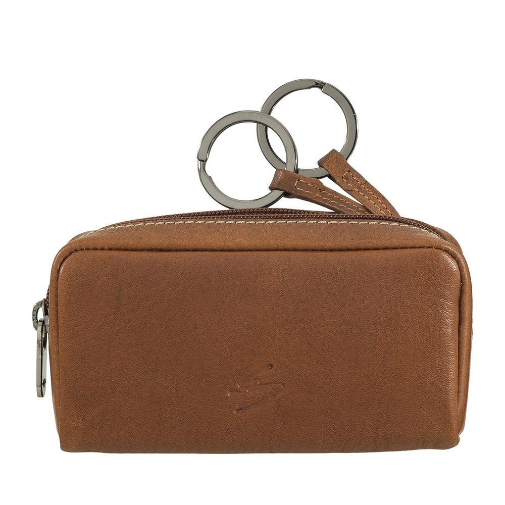 Nuvola leather case with leather keychain with zipper - keychain with 2 metal rings and zip pockets for keys, coins and small objects