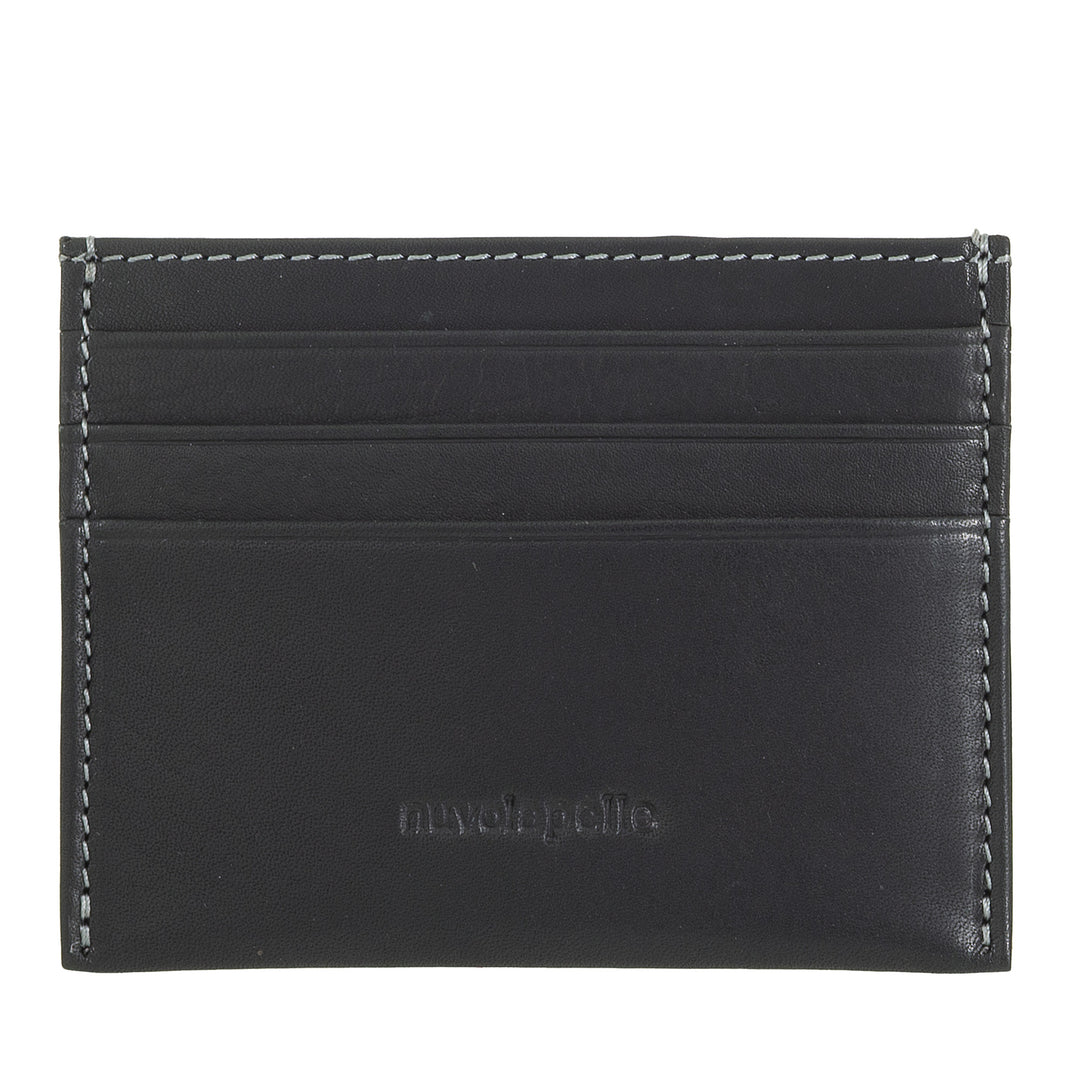 Nuvola leather mini men's wallet in leather with door holder - compact and elegant, from pocket jacket, with card compartments, transparent windows and minimal design