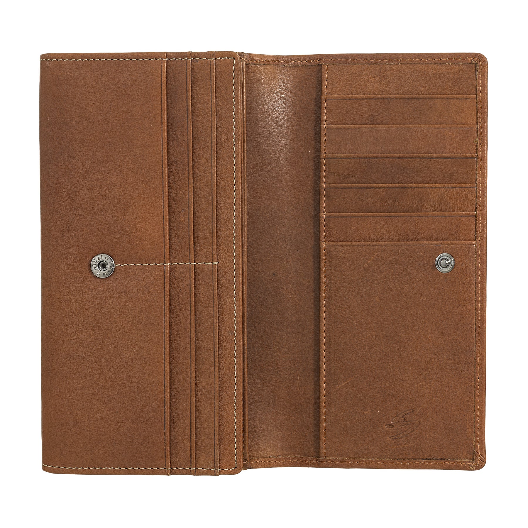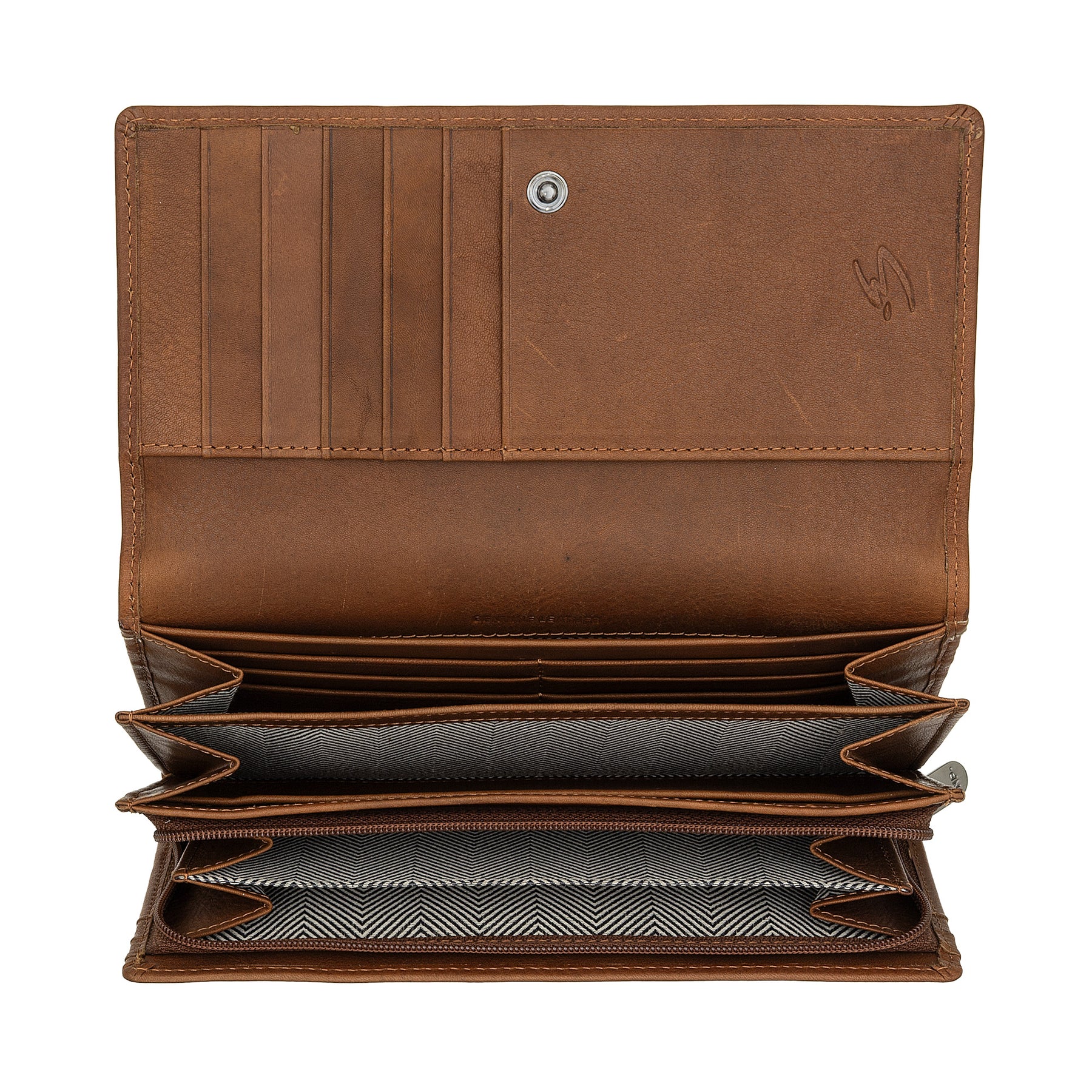 Timeless elegance and daily functionality meet in this women's leather wallet. The classic design, enhanced by natural grain and contrasting seams, contains a large and organized interior with numerous compartments for cards, banknotes and documents. The practical section with zip and the closure with a pressure button guarantee safety and comfort in every use. Refined and versatile, it is the perfect accessory for those looking for quality, practicality and an authentic style to always carry with them.