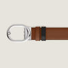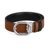 The L'Ovale 35 mm reversible belt combines the elegance of the palladium-finish oval buckle and the versatility of two distinct leather belts. The buckle, which deviates from traditional square designs, adds a fresh touch to your style. The belt offers two options: one side in calfskin with fawn Sartorial print for a warm and textured look, while another in black Meisterstück leather for a classic and sophisticated mood suitable for any occasion.