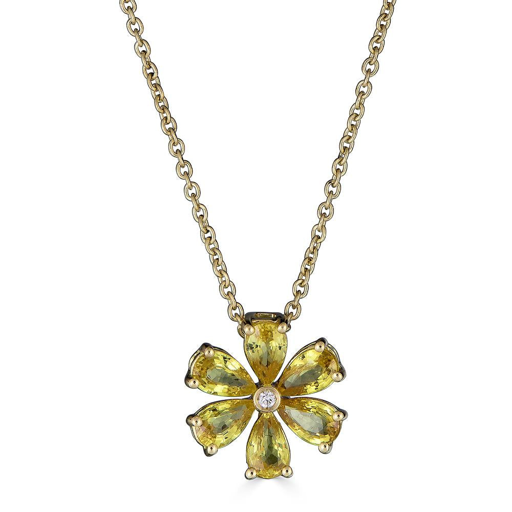 Zydo Flower Pendant with Colorful Gemstones and Diamonds Yellow Gold Yellow Sapphire 62040