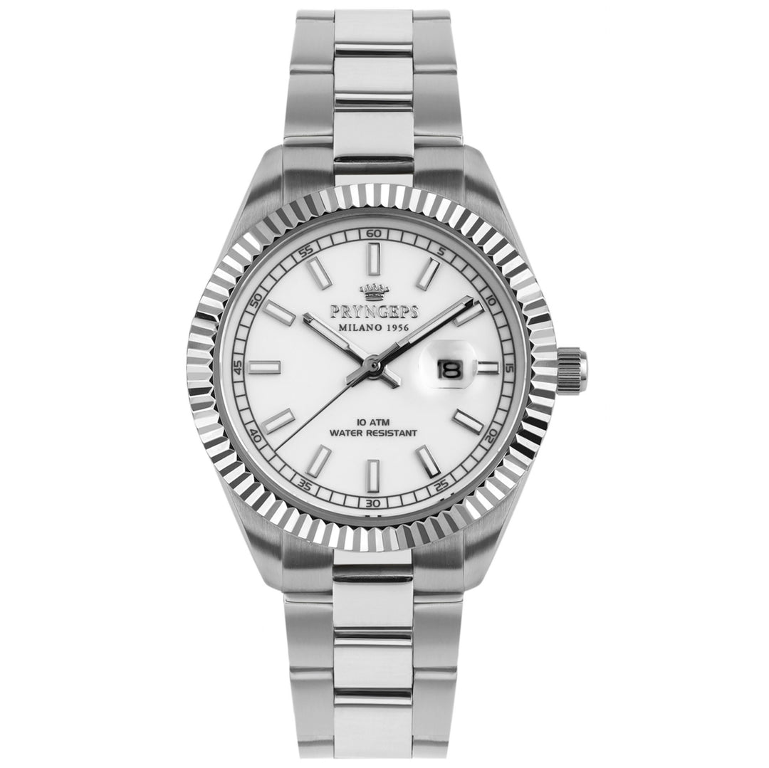 Pryngeps men's watch 40mm white steel quartz A1034/1 BI