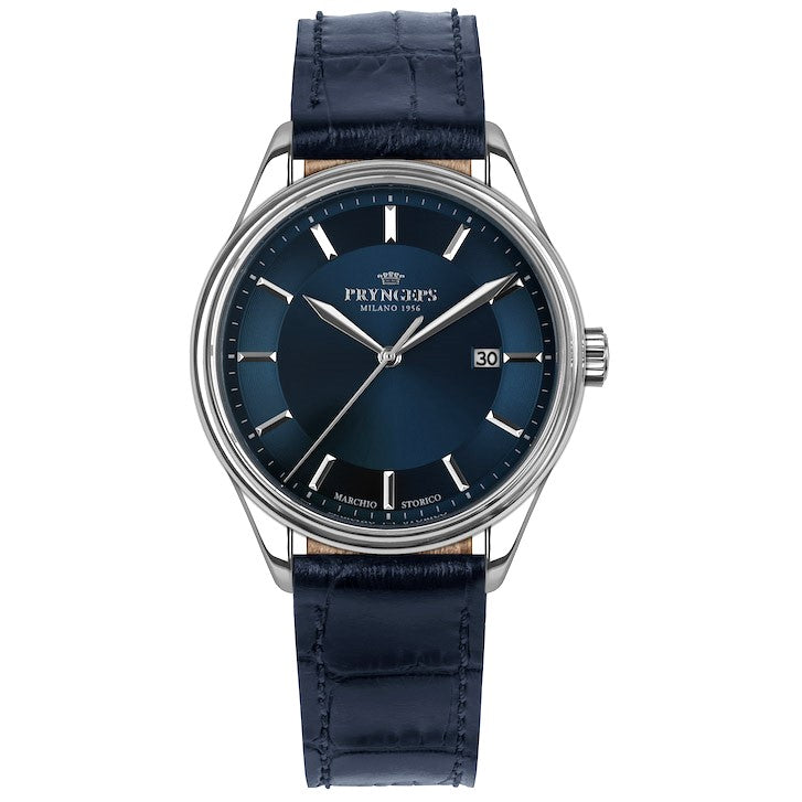 Pryngeps Slim Classic men's watch 41mm blue quartz steel A1214 BL