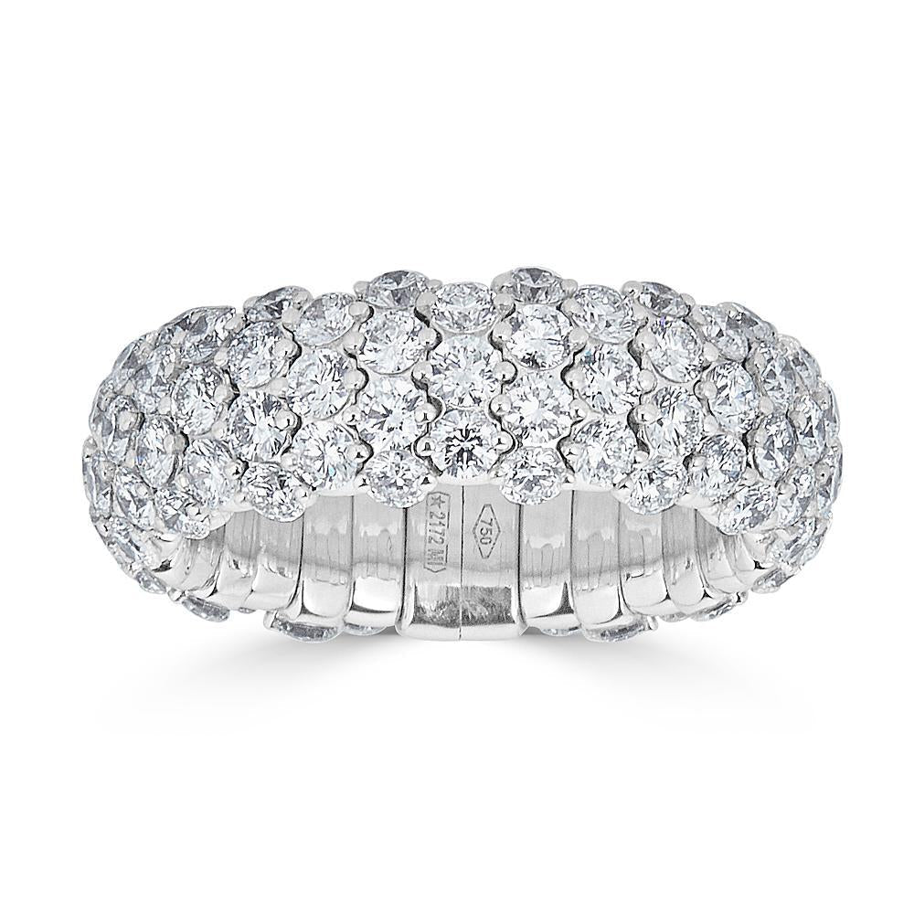 This delightful 18k gold spring ring features 3.82 carats of sparkling round diamonds, in a classic and elegant look. The stretchable action makes this ring easy and convenient to put on and take off, while its exceptional workmanship ensures the springs are sturdy and durable. The ring size is made to order. Handmade in Italy by ZYDO Italian Jewelry. Diamond Quality: F Color, VS Clarity Diamond Carat Weight: 3.82 Dimensions: Width: 5/16 inch.