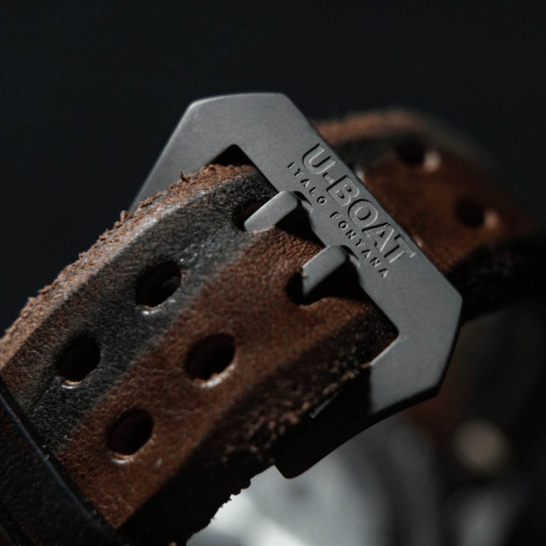 A tribute to Tuscan tradition and craftsmanship. This strap is entirely handmade in Italy, using carefully selected leathers and top quality materials. Every detail tells of the passion and experience of the artisans who created it. Included in the package is an extra titanium bracelet, for an alternative with a technical and contemporary style.