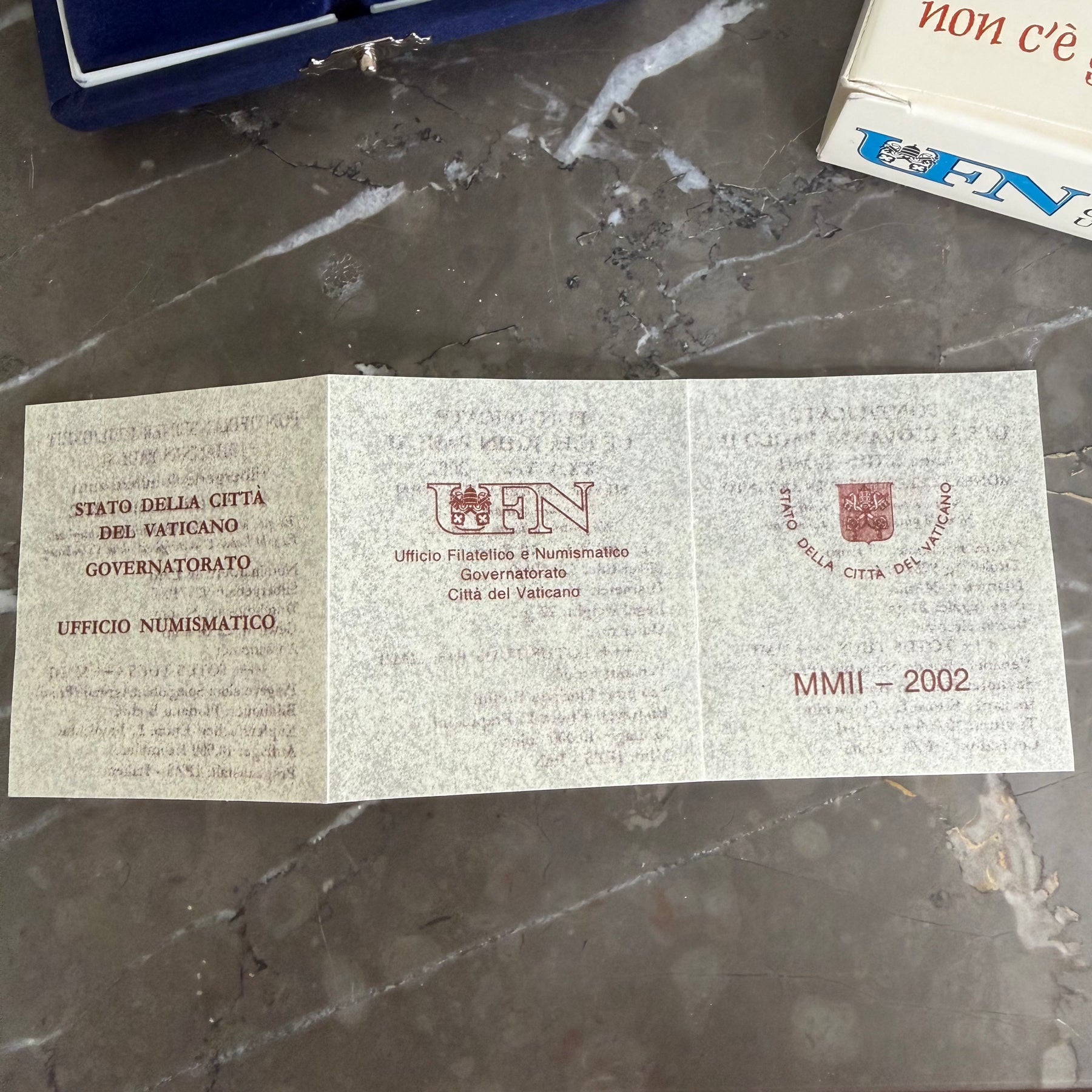 Commemorative coin in 925 silver minted by the IPZS to celebrate the twenty-fourth year of the pontificate of John Paul II. This 10 euro specimen bears the message "There is no peace without justice. There is no justice without forgiveness", engraved by the master Ettore L. Frapiccini based on a design by the sculptor Floriano Bodini. Diameter 34 mm, weight 22 grams, Proof version with circular edge +++ TOTUS TUUS +++ MMIT. Limited edition of 10,000 copies, it represents a piece of Vatican numismatics of historical and artistic value.