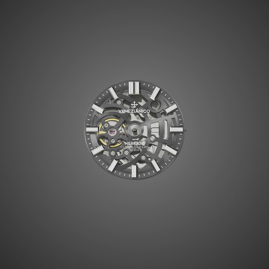Ultralight is the most innovative watch in the Nereid series and is inspired by the Vitruvian man, a symbol of the Renaissance and the end of the contrast between art and science. The singular geometry of the skeleton quadrant integrates perfectly with the body of the movement, through an original patented construction solution that allows greater lightness and less dimensions.