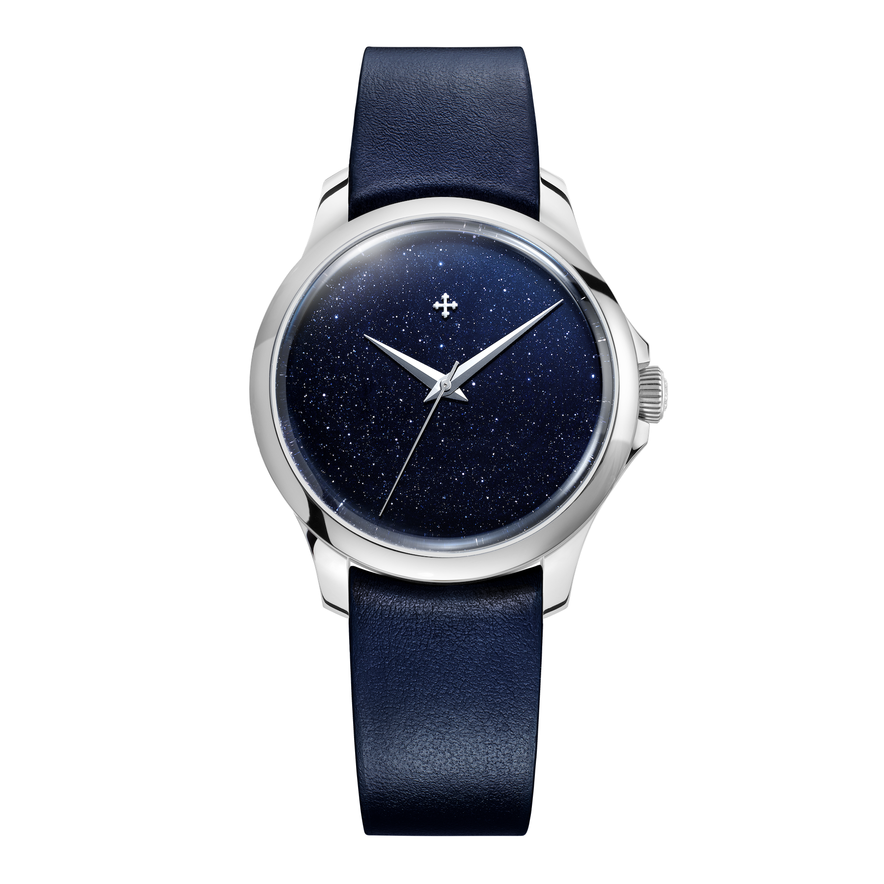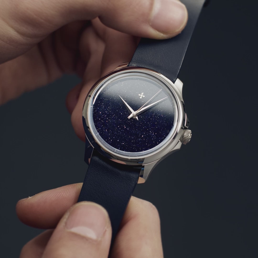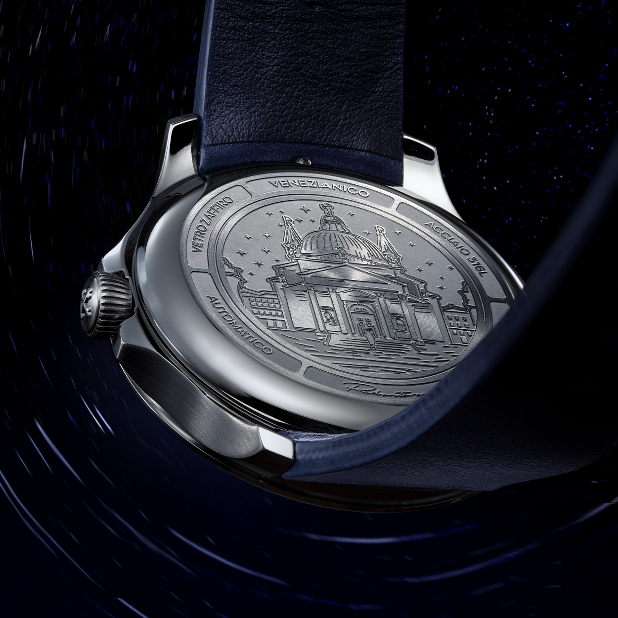 The adventurine, used in this model of Redeemer, is a fine glass material discovered in Venice in the seventeenth century by the Murano masters. It is known for its characteristic glitter, similar to a starry sky, obtained by adding small copper fragments during processing. A detail that makes each dial unique, inspired by the Venetian tradition.