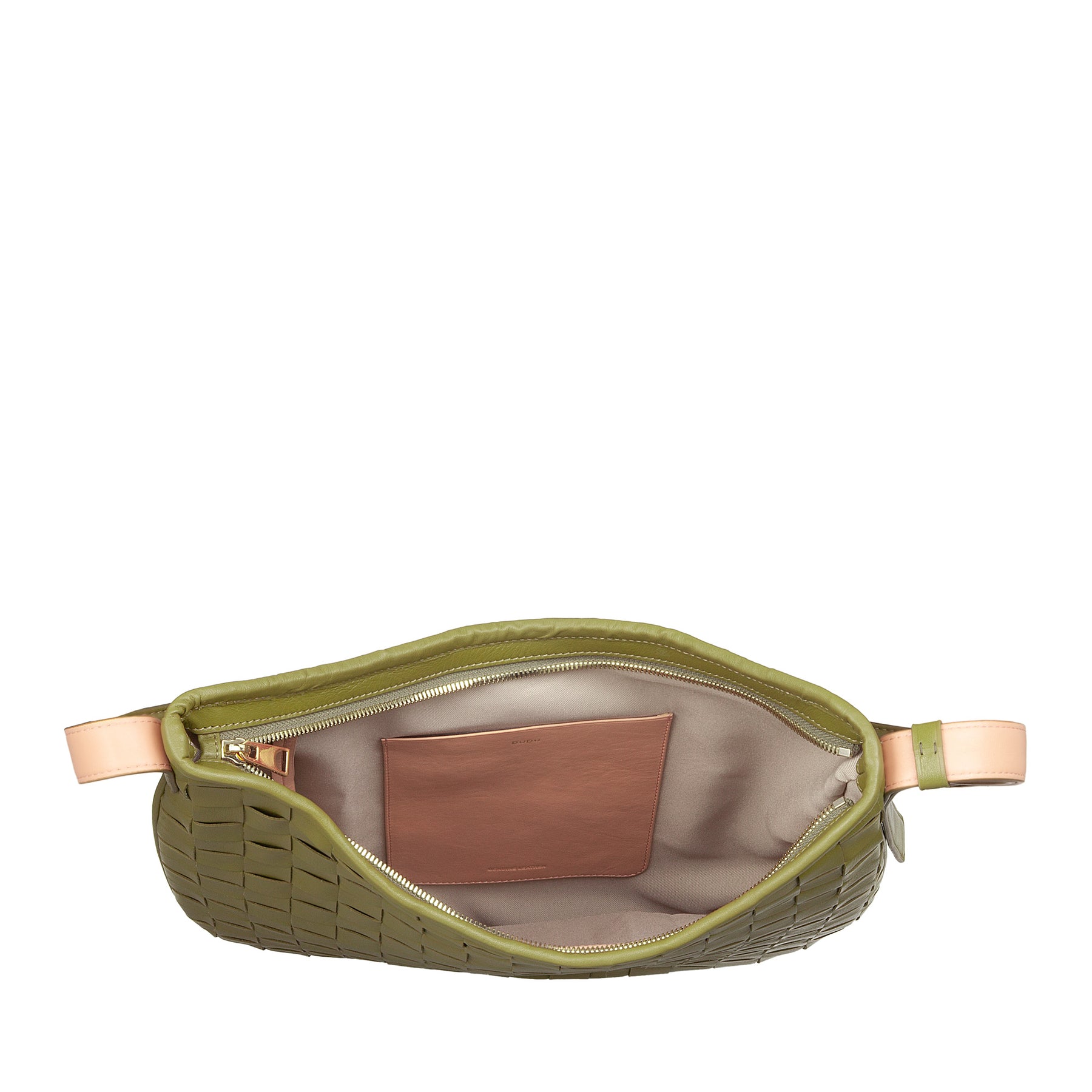 La elegancia atemporal cumple con la practicidad diaria. Esta bolsa de vagabundo en cuero tejido real es un accesorio refinado y versátil, diseñado para acompañarlo en cualquier momento del día. Su forma suave y grande se adapta perfectamente al estilo dinámico de aquellos que buscan comodidad y clase en una sola solución. Equipado con mango ajustable, se puede llevar cómodamente al hombro, ofreciendo practicidad sin sacrificar estilo. El espacioso interior, con bolsillos prácticos y cierre de cremallera, le permite organizar mejor sus efectos personales. Un sofisticado imprescindible, ideal para la mujer a la que le encanta destacarse con detalles artesanales y diseño contemporáneo.