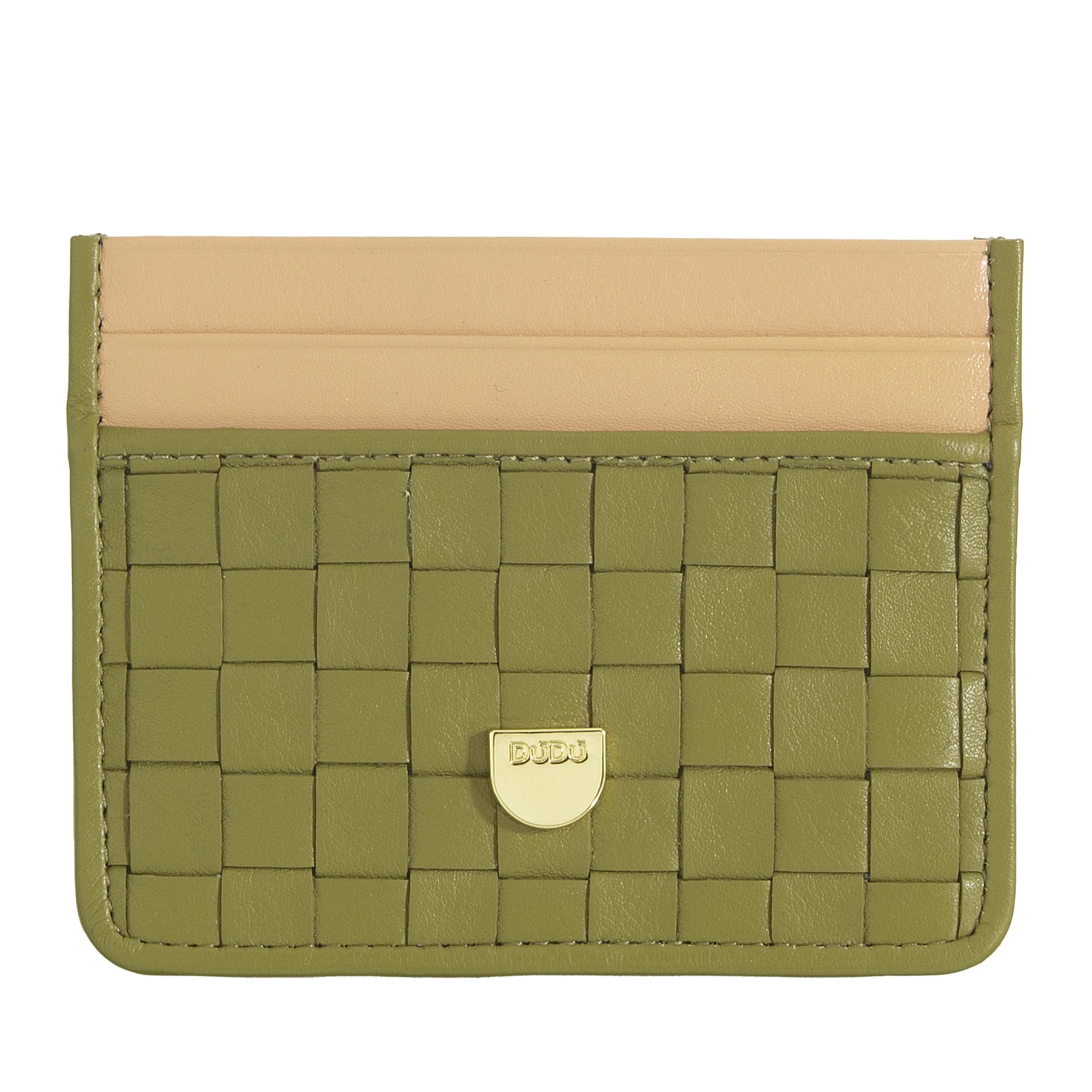 Soporte de tarjetas Dudu en Mujer de cuero tejido - Tarjeta delgada compacta compacta entrelazada, diseño elegante, soporte de tarjeta de crédito de bolsillo