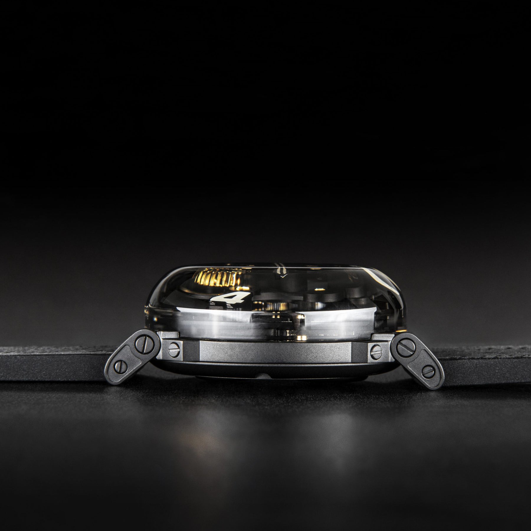 Abajo Sistema de cierre innovador (sistema de anillo de bloqueo) con reemplazo rápido de la batería. Un número de serie y un código QR grabado con láser. El escaneo del código QR desde el acceso a una experiencia digital exclusiva. Rimsssa de la hora.