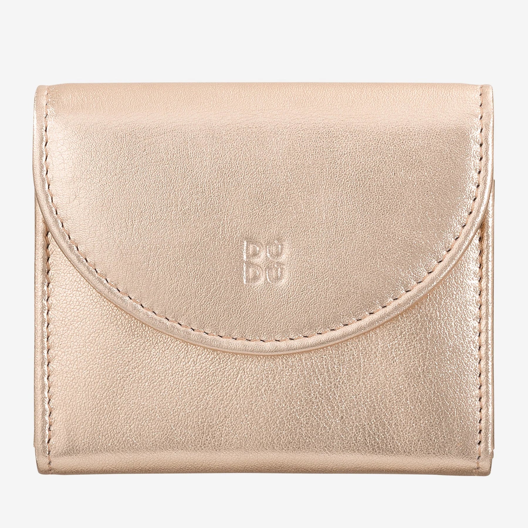 DUDU Cartera Mini Slim para Mujer de Piel Auténtica con Monedero con Cremallera, Cierre de Botón, Cartera Compacta de Color