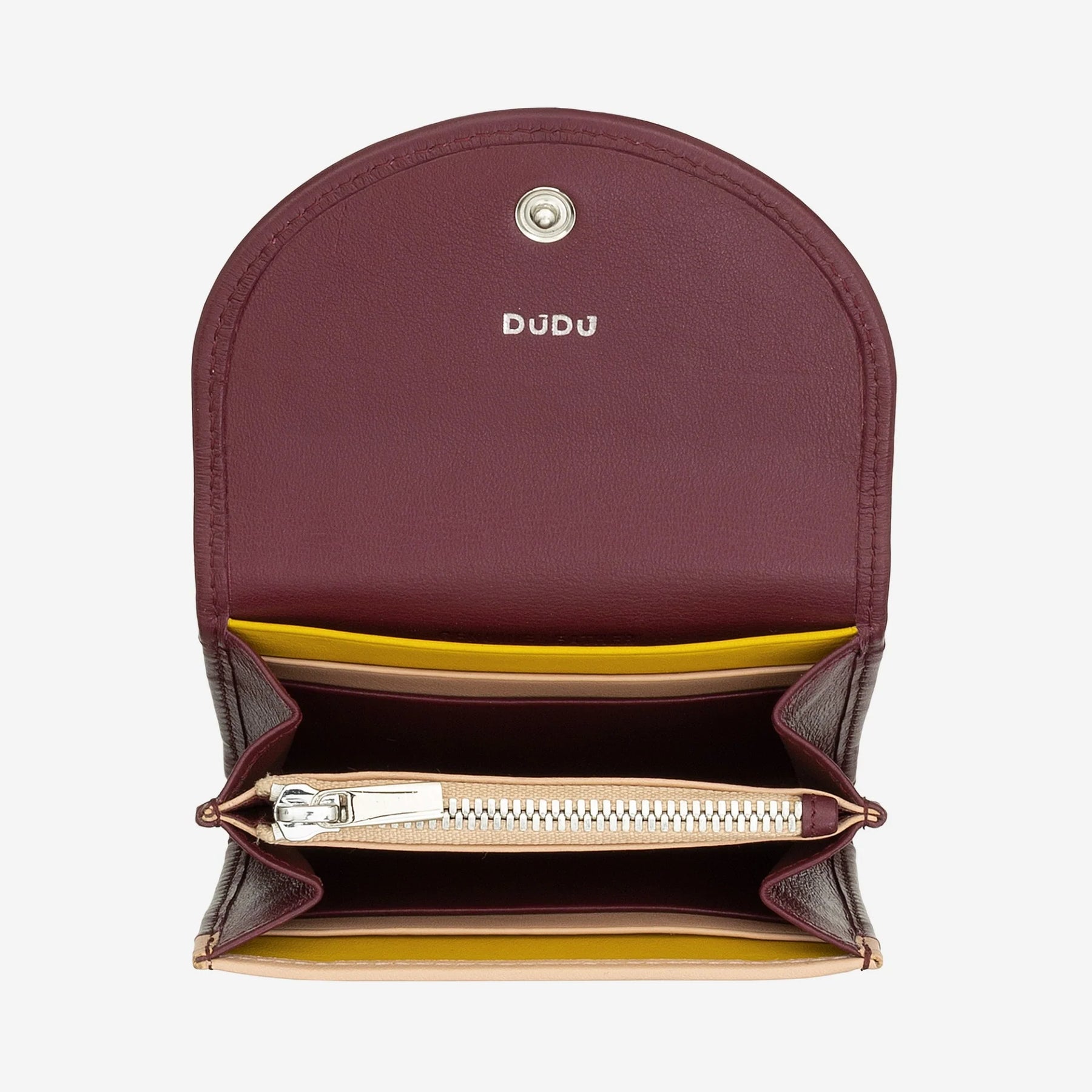 DUDU Cartera Mini Slim para Mujer de Piel Auténtica con Monedero con Cremallera, Cierre de Botón, Cartera Compacta de Color