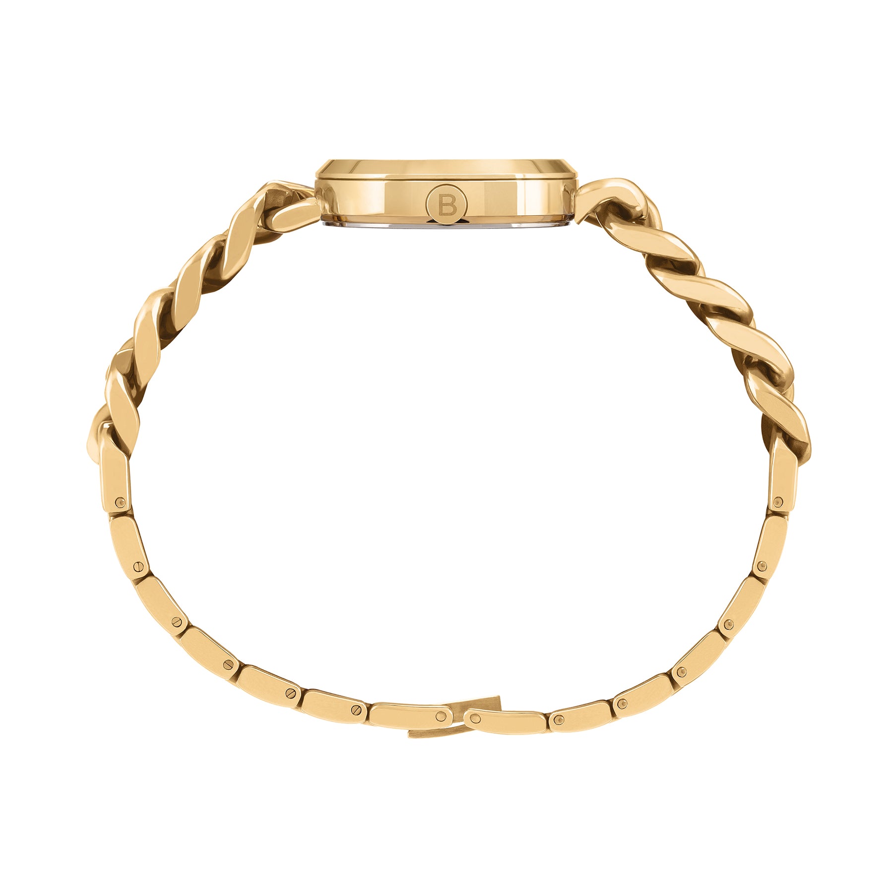 La montre heure seulement pour femme Blanche allie élégance et design essentiel. Le boîtier en acier doré poli crée un contraste raffiné avec le cadran blanc, tandis que le bracelet groumette à la finition polie ajoute une touche chic. Le fermoir réglable assure un ajustement parfait, ce qui en fait l'accessoire idéal pour toutes les occasions.