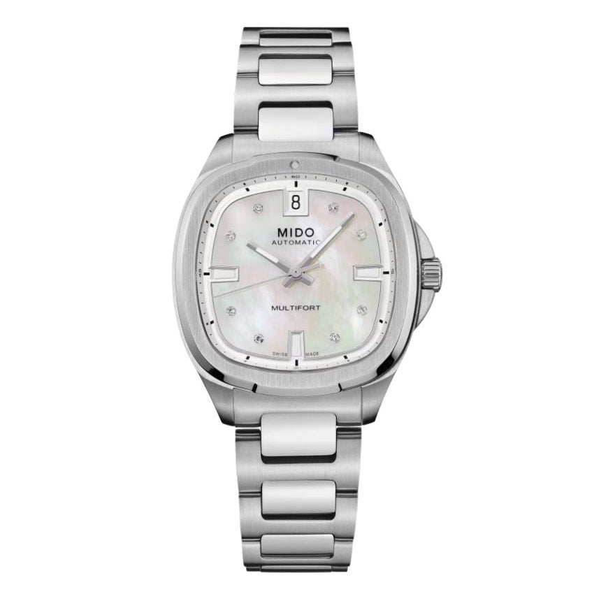 MIDO는 성공적인 Multifort TV 컬렉션에 새로운 차원을 추가합니다. 컬트 TV 모양의 실루엣을 전혀 잃지 않은 채 35 x 34.2mm 크기의 Multifort TV 35가 완벽하게 다양한 크기를 갖춘 매력적인 버전으로 주목할만한 데뷔를 했습니다. 독특한 특징: 첨단 Nivachron™ 헤어스프링이 보장하는 뛰어난 신뢰성과 정밀함으로 유명한 자동 칼리버 72 무브먼트 덕분에 두께가 최대로 감소되었습니다. 이 모델의 독특한 매력은 어떤 다이얼 조합에서도 모든 손목을 사로잡을 것이며 컬렉션의 시그니처 디자인 요소가 절묘하게 융합된 모습을 보여줍니다.