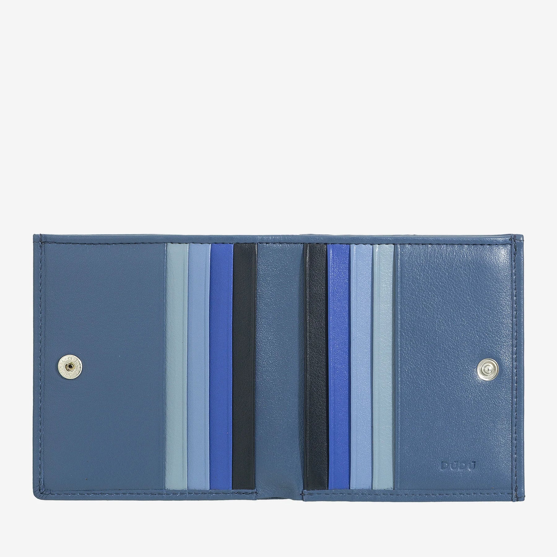Mały wielokolorowy portfel męski skórzany RFID wykonany z prawdziwej miękkiej skóry cielęcej. Wewnętrzne kieszenie na karty kredytowe i zewnętrzna kieszeń na monety. Wyróżnij się dzięki Colourful od DuDu.