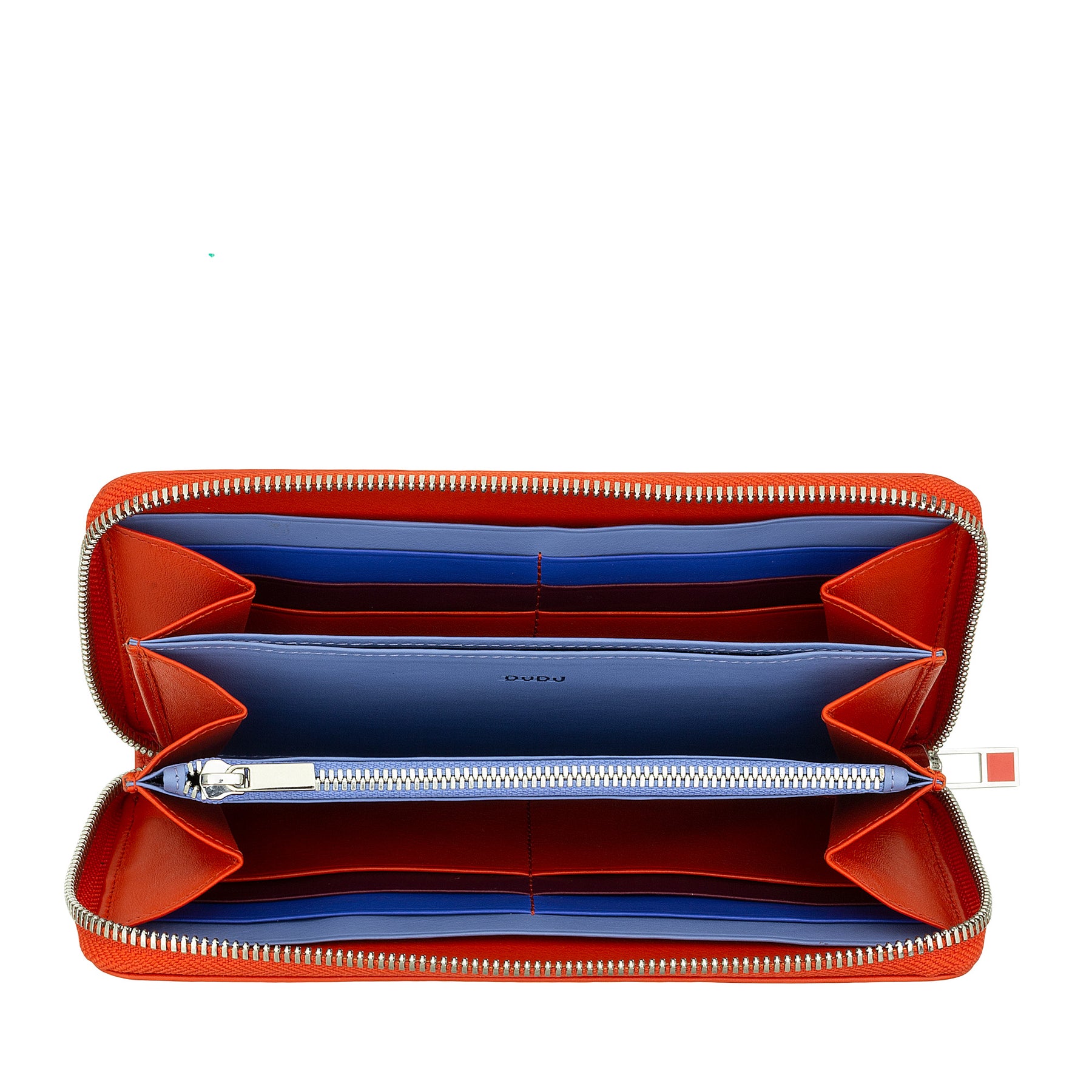 Portafoglio zip around donna multicolore RFID con lampo a giro realizzato in vera morbida pelle di vitello. Interno diviso in 3 scomparti a soffietto con tasche porta carte di credito e tasca portamonete.