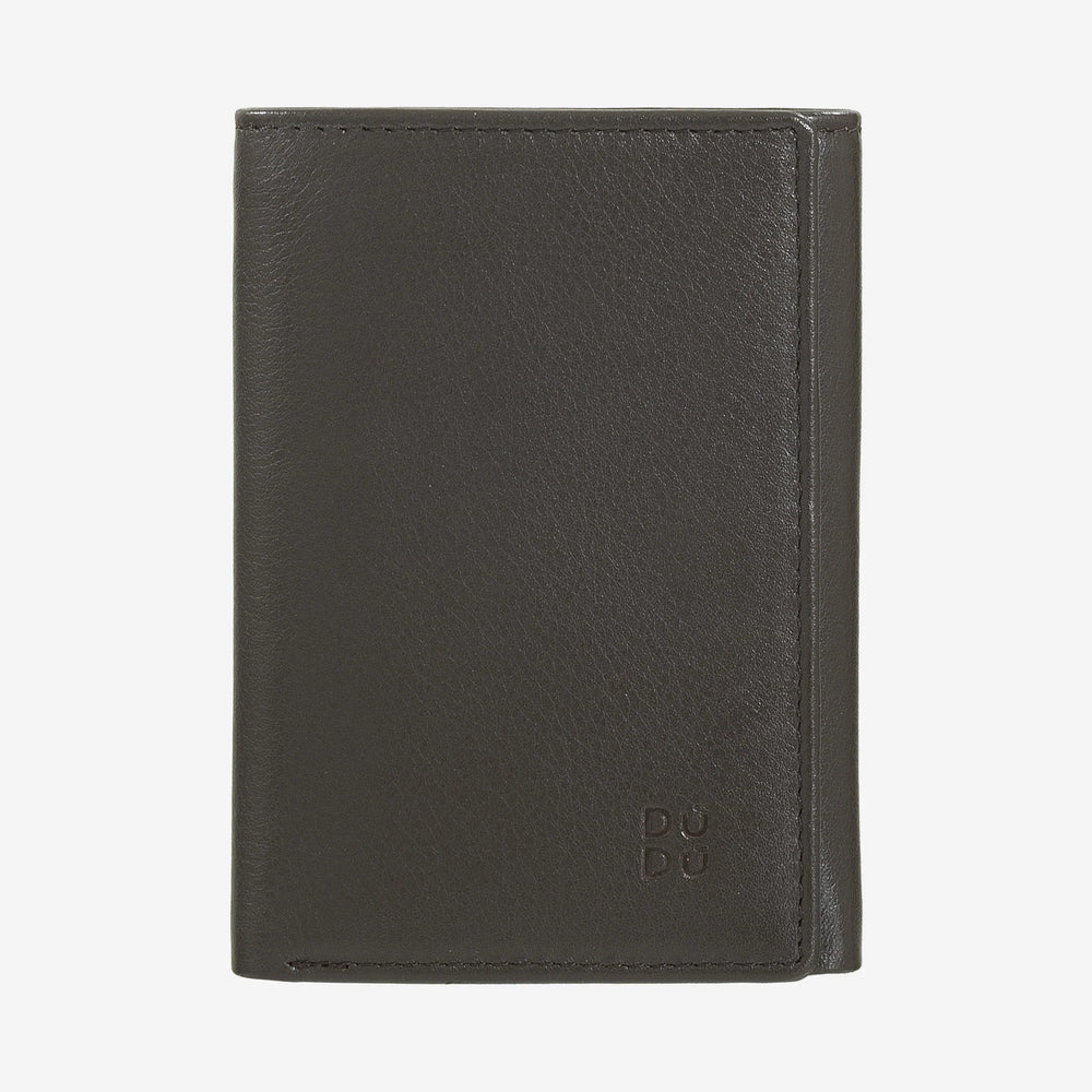 DUDU Portafoglio Uomo Trifold in Pelle, Porta Tessere Carte RFID Verticale con Bottone, Porta Banconote, Multicolore
