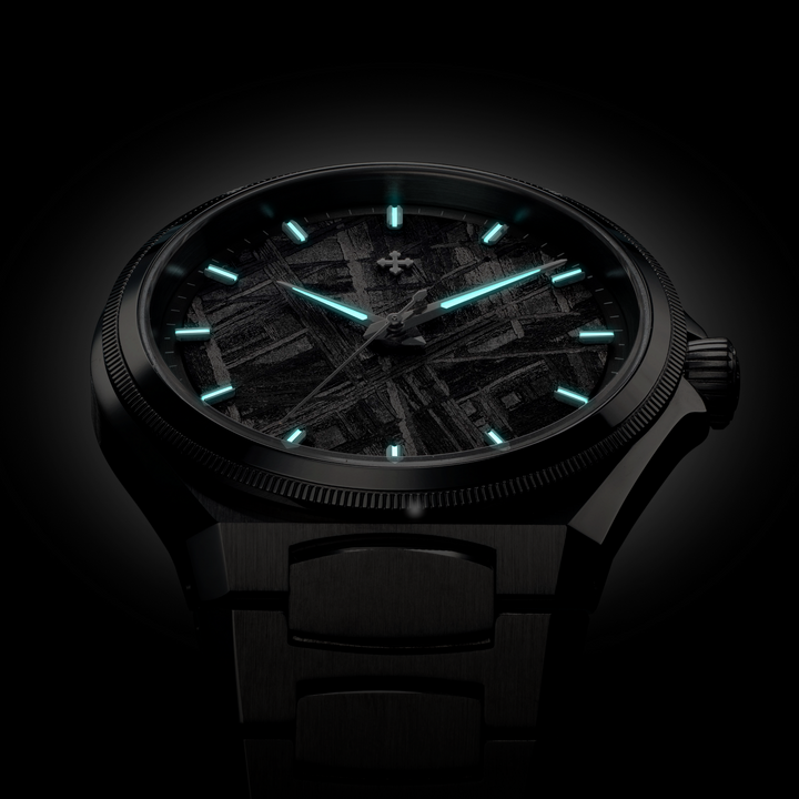 Arsenale Meteorite fonde l’energia primordiale di un materiale extraterrestre con un design essenziale e deciso. Il quadrante, realizzato in autentico meteorite, mostra una trama unica, formata da miliardi di anni di raffreddamento nello spazio profondo. La robusta cassa in acciaio satinato ne esalta il carattere audace, mentre il bracciale integrato completa l’orologio con un’estetica moderna e raffinata.
