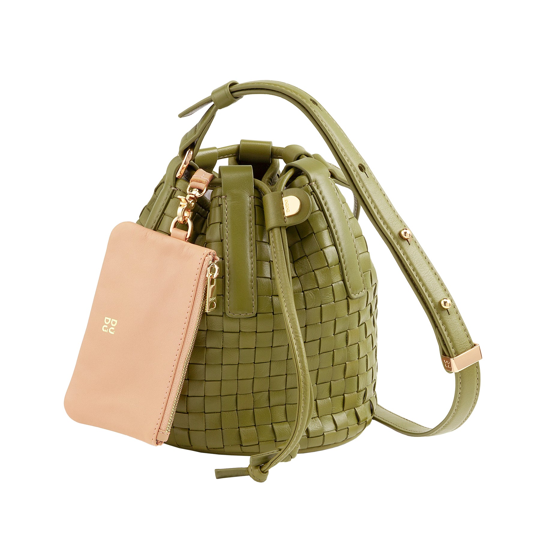 Bolsa balde de couro tecido DUDU – bolsa feminina pequena com alça de ombro ajustável, cordão e embreagem interna, elegante e artesanal