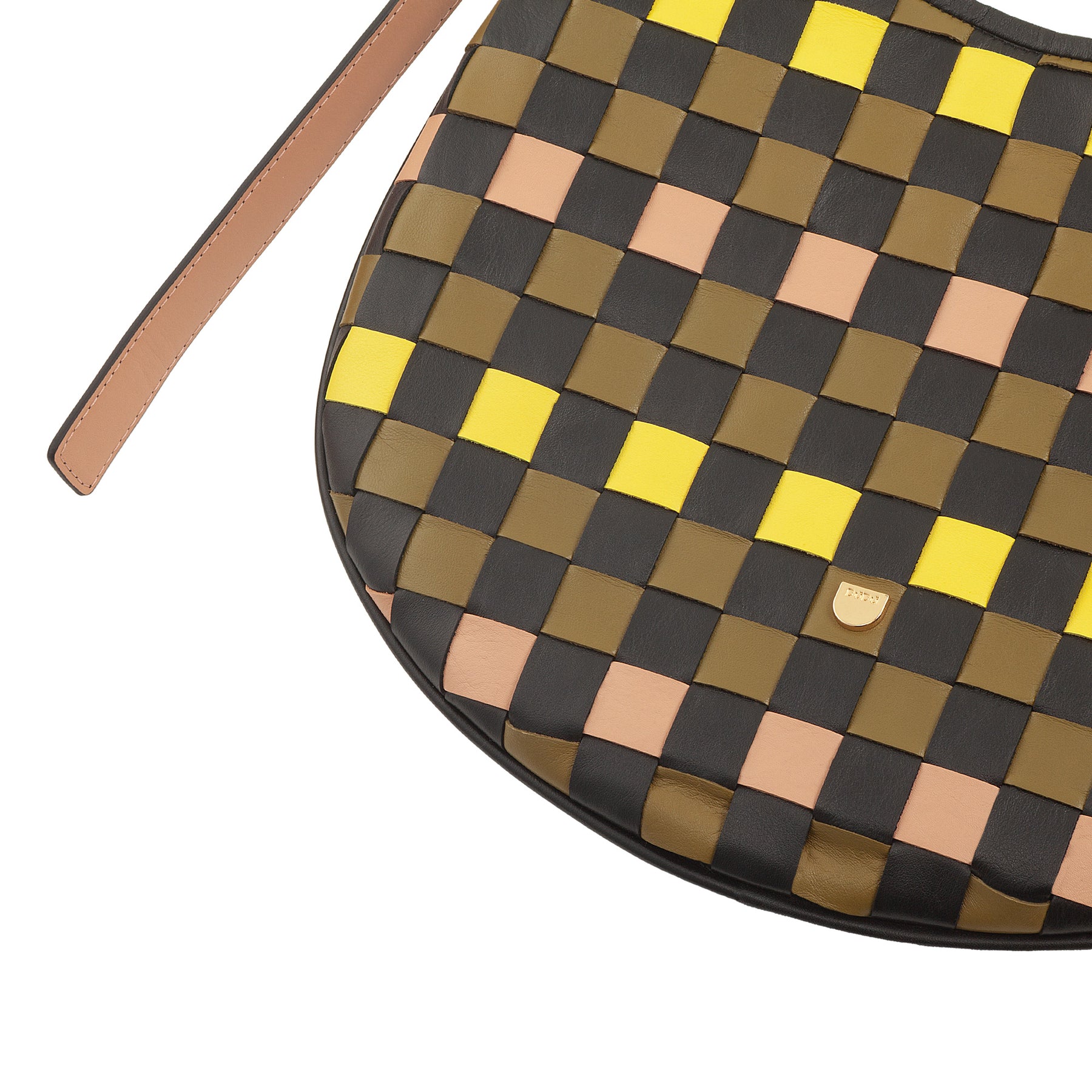 Um design requintado, um trabalho artesanal que conquista à primeira vista: esta bolsa tiracolo em couro verdadeiro tecido é o equilíbrio perfeito entre estilo e praticidade. A silhueta em forma de meia-lua o torna versátil e moderno, ideal para acompanhá-lo em qualquer ocasião - do trabalho a eventos noturnos. A alça ajustável em couro garante conforto e ajuste personalizado, enquanto os detalhes em metal dourado acrescentam um toque de brilho sofisticado. No interior, a bolsa oferece um espaço bem organizado com bolso com zíper e compartimentos funcionais, pensados para manter o essencial em ordem sem abrir mão da elegância. Mais que um acessório: uma pequena obra-prima de artesanato, dedicada a quem quer se destacar pela classe e simplicidade.