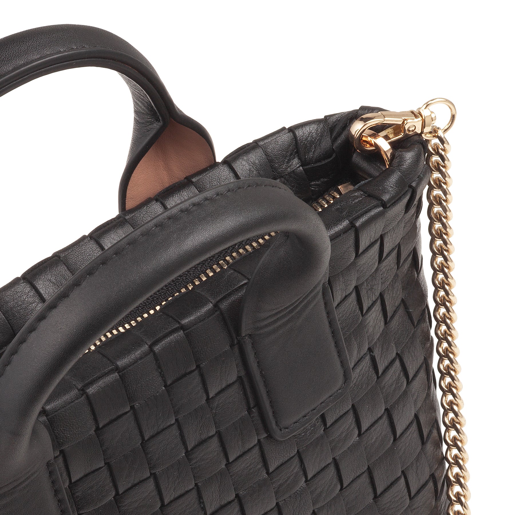 Pequeno no tamanho, grande no estilo. Esta mini bolsa feminina em couro verdadeiro tecido é o acessório ideal para quem gosta de se destacar com detalhes requintados. Seu formato compacto e sofisticado guarda com elegância o essencial, tornando-o perfeito para passeios diários ou ocasiões especiais. As alças duplas permitem transportá-lo na mão com classe, enquanto a alça de ombro em corrente dourada acrescenta um toque de modernidade e permite usá-lo confortavelmente no ombro. O interior, bem organizado com bolso com zíper e compartimentos funcionais, combina praticidade e design refinado. Uma pequena joia artesanal, pensada para a mulher que deseja um acessório único, elegante e atemporal.