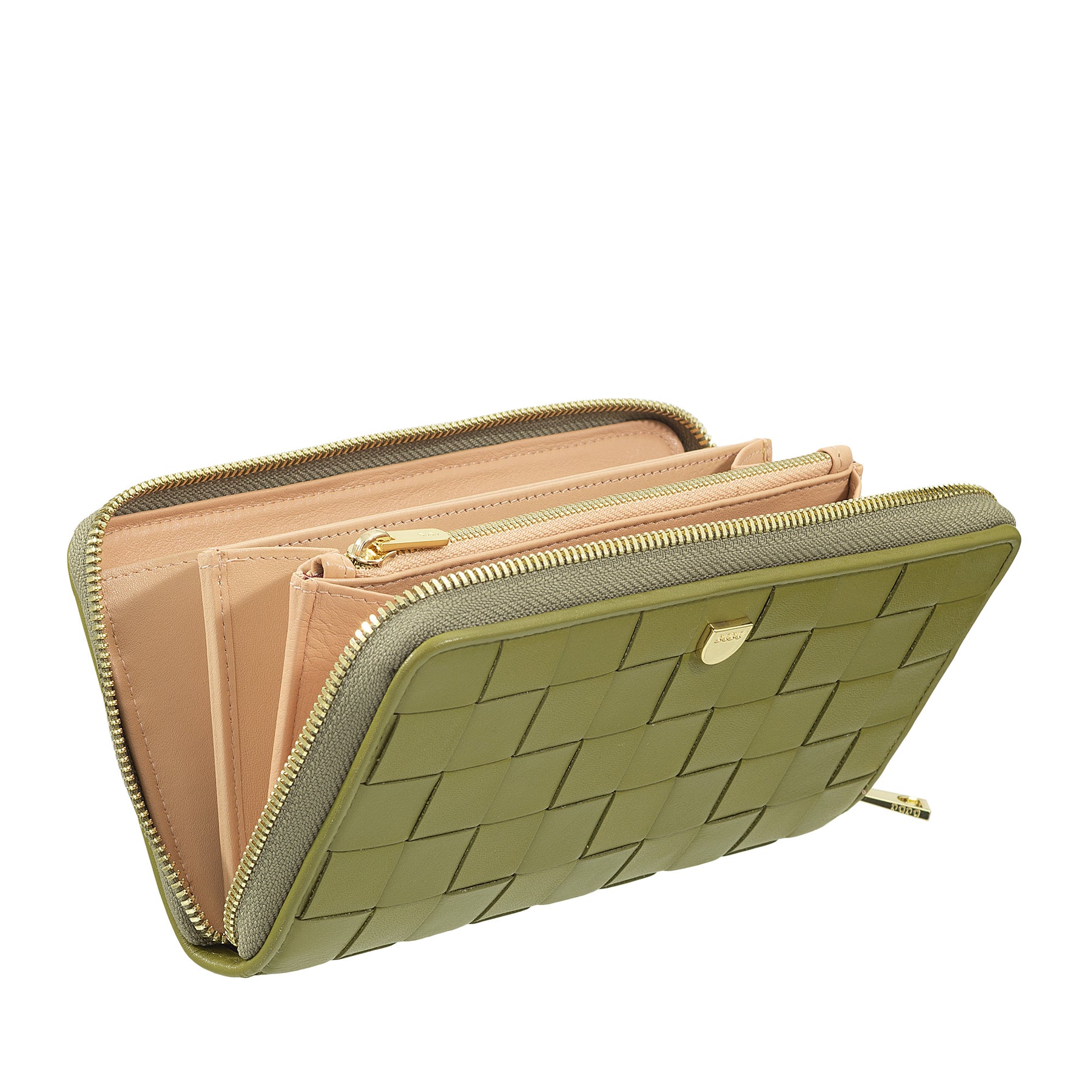 Carteira feminina DUDU em couro tecido genuíno com zíper, elegante e espaçosa – porta-cartões, notas e moedas, carteira tecida com zíper completo