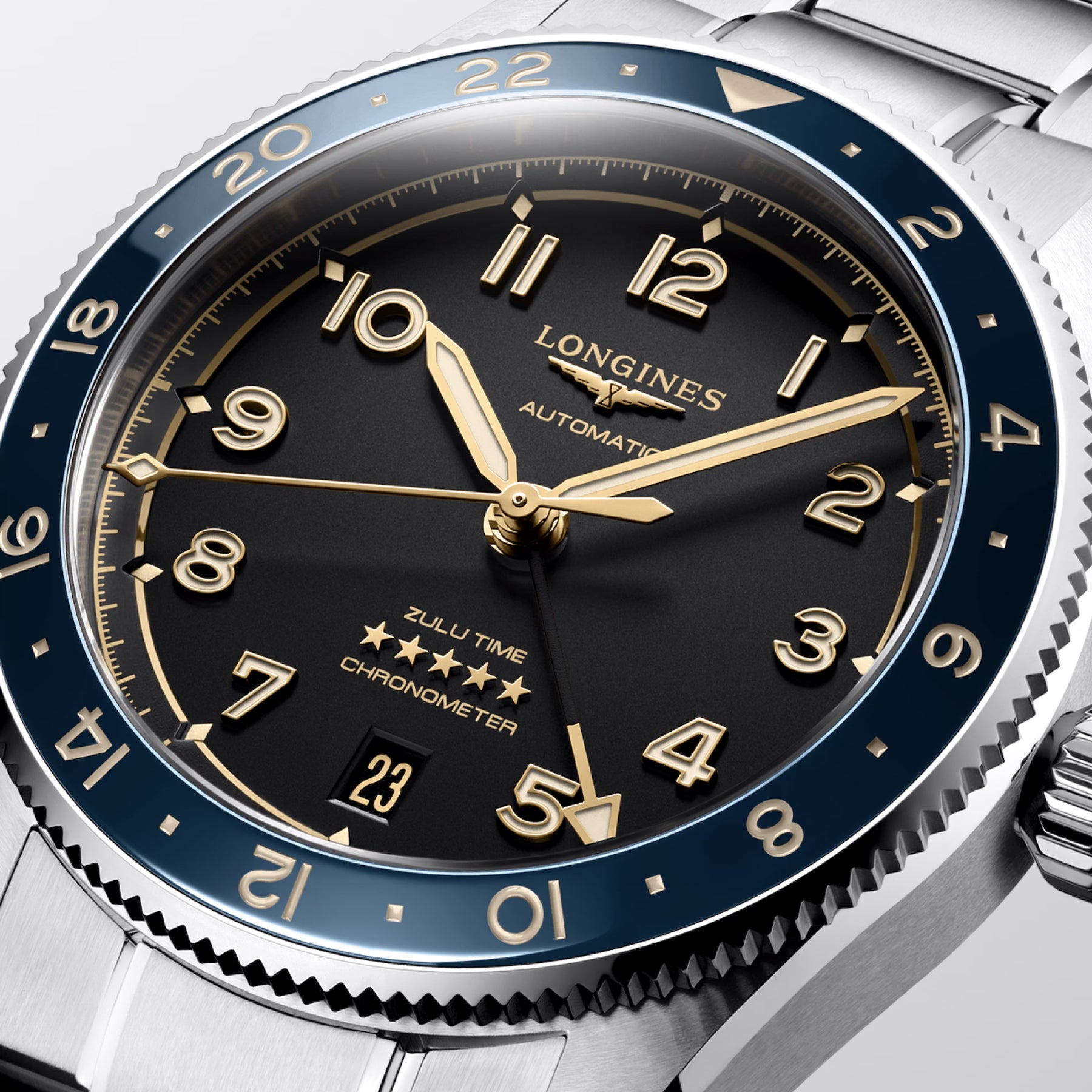 O LONGINES Spirit Zulu Time simboliza o domínio centenário da marca em relógios com vários fusos horários. A sua origem e nome derivam do primeiro relógio de pulso LONGINES com dois fusos horários, fabricado em 1925, que apresentava a bandeira Zulu no mostrador (onde Zulu se refere à letra “Z” que indica a hora universal para aviadores). Esteticamente, o LONGINES Spirit Zulu Time destaca-se pelo seu acabamento meticuloso e especial atenção aos detalhes. Possui uma luneta giratória bidirecional com inserção de cerâmica. Cada modelo é alimentado por um calibre exclusivo LONGINES, equipado com uma mola de silício, resistente a campos magnéticos e certificado como cronômetro COSC.