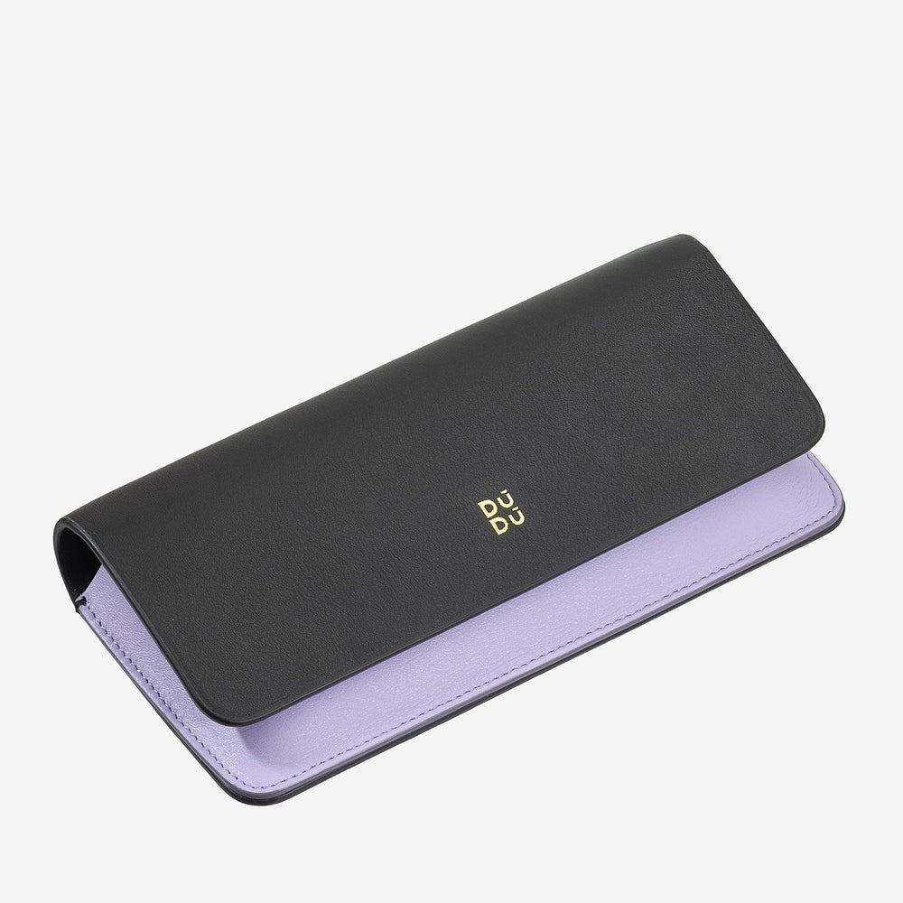 Feito de couro de bezerro macio, nosso estojo para óculos é o estojo perfeito para seus óculos de sol ou óculos. Leve e funcional, você pode carregá-lo sempre na bolsa ou mochila. Seu interior acomoda confortavelmente seus óculos e um pano para limpar as lentes, para que você esteja sempre pronto para qualquer ocasião. Seus acabamentos e design bicolor também o tornam um acessório elegante e colorido para guardar com segurança seus óculos favoritos.